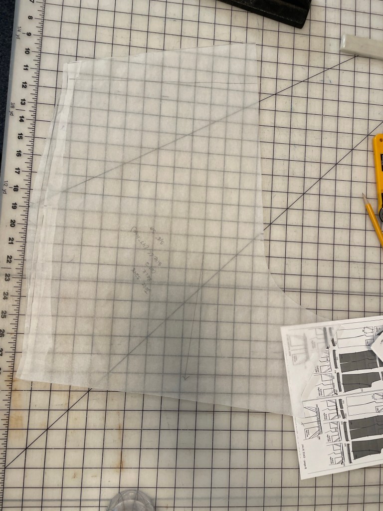 I also noticed they were too tight in the butt and the side seam wasn’t hanging straight. So for my second version I added 1/4” to all side seams, thus giving myself another 1” of ease, and added another 1/2” width to the back side seam at the hip. Here’s what the back piece looked like after I was done: