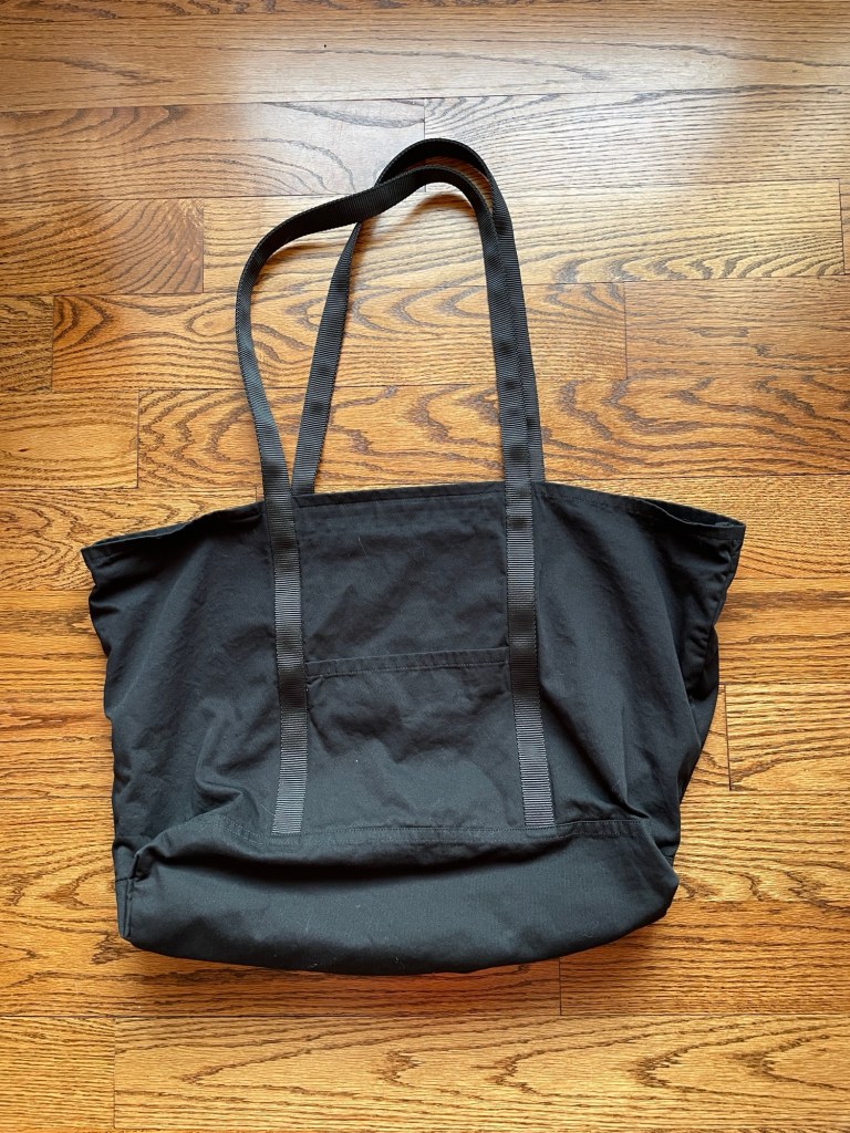 This is a good knockoff of the LL Bean Boat and Tote. I do recommend using either a 24 oz cotton canvas like the LL Bean version or using a stiff bag organizer inside though if you want more structure. I plan on getting some of that heavy canvas in the future so I can make reusable grocery bags that don’t rip/fall apart like so many of the store bought ones. I use the bag organizer from my medium size Boat and Tote on one side and fill in the extra room on the other with extra clothes and diapers.