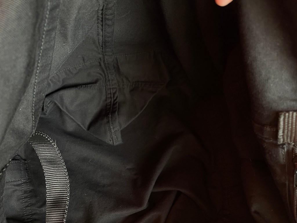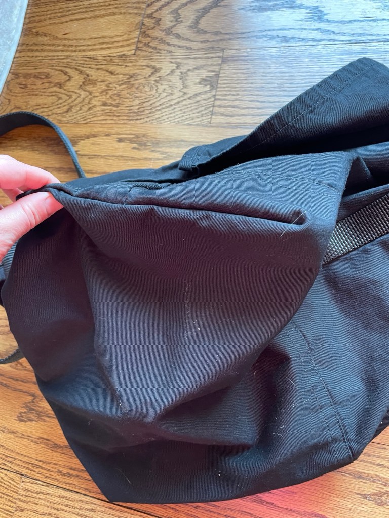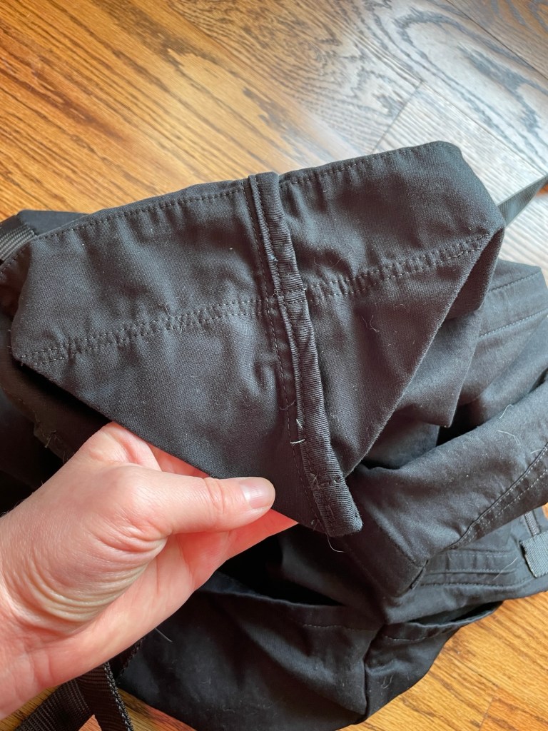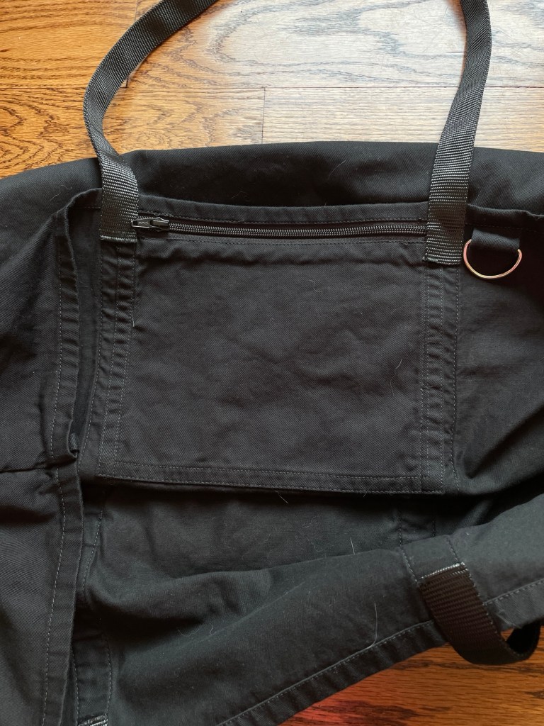 I thought the included instructions were pretty good. I just was working very late at night and got confused about the zipper and how the ends of it were secured. I did some hunting online and found this Instagram post, which unfortunately showed incorrect strap construction. After going through the trouble of making self fabric zipper ends, I realized the correct construction actually has a much shorter inside strap covering the ends of the zippers. Lots of ripping out later I finally had it corrected. I messed up a bit with marking the center of the inner straps and thus they aren’t as even as they should be, but the photo below shows how the straps end just below the zipper and thus cover the left and right ends of the zipper: