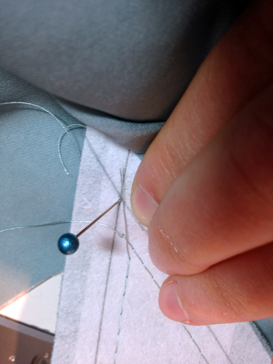 Here are some action photos, along with a video of me doing the second pass for the larger keyhole buttonhole. I used three layers of a midweight 100% linen and Gutermann Mara 120 thread.
