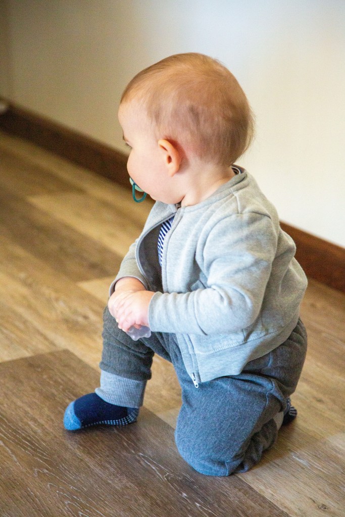 I love the overalls! They are cozy and so sturdy when he crawls in the ground outside, and give a more formal appearance than knit pants. The tucks at the knees give him plenty of room to bend his knees when he’s crawling. A well designed pattern! I am thinking of making another pair for him in the near future.