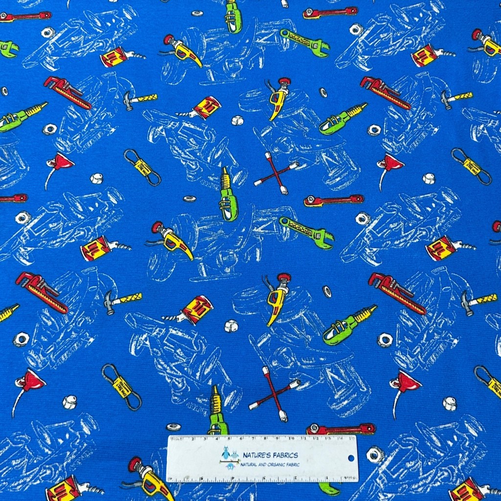 For the pajamas I used a cotton interlock, with a cotton baby rib knit for the contrast (cuffs, neck, and one of the snap closure facings since I was short on the main fabric). Both were from Nature’s Fabrics.