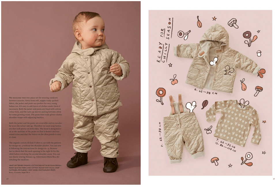 The pattern is marketed as the only baby clothes pattern you will ever need, and I feel that’s pretty accurate! It includes European sizes 50-98 (20”-38.5”) which roughly covers newborn through toddlerhood. I would say that at less than $10 this is by far the most cost effective pattern out there. It does cover your needs for basic knit fabric baby items, but if you want to do anything with wovens you will have to look elsewhere.