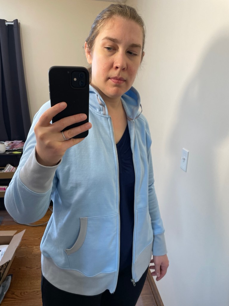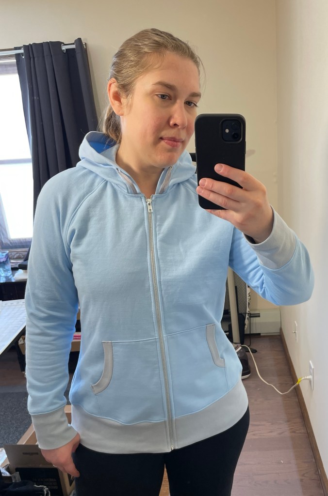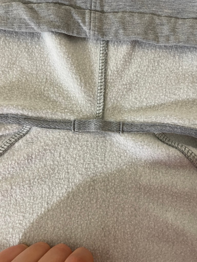 For both projects I used a 5/8” finished width single fold binder for my cover stitch machine to attach the ribbing to the fabric. I found the velour was too fussy when it came time to stitch the elastic casing for the waist with my cover stitch machine (so many skipped stitches) so I ended up using a zigzag stitch on my regular sewing machine for that.