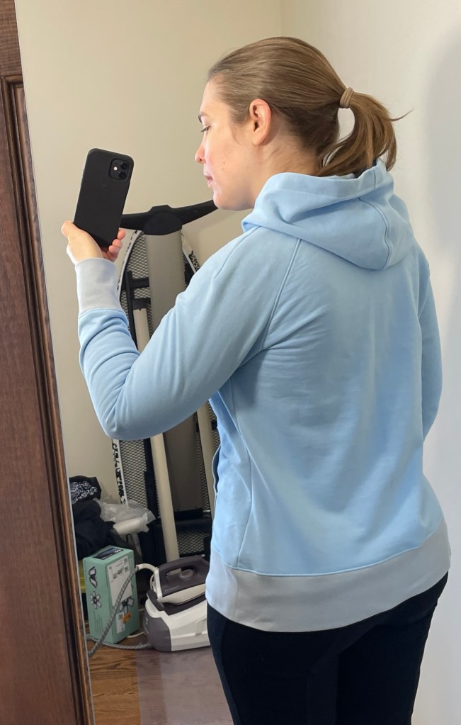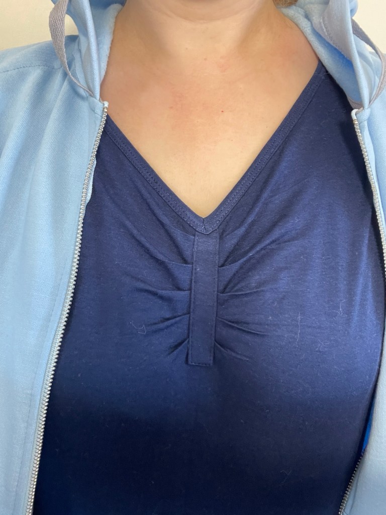 I found I needed to mark where the binding went at the bottom of the armholes of the shirt, because otherwise it is hard to see exactly where the bottom of the armhole is when you’re binding it and you may end up halfway down the side seam! Otherwise it was a straightforward process constructing the shirt.